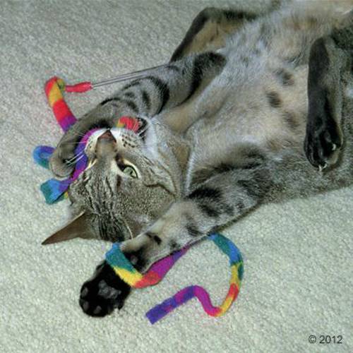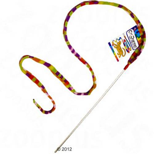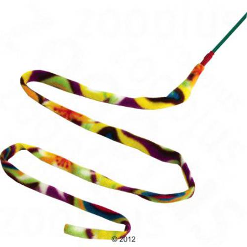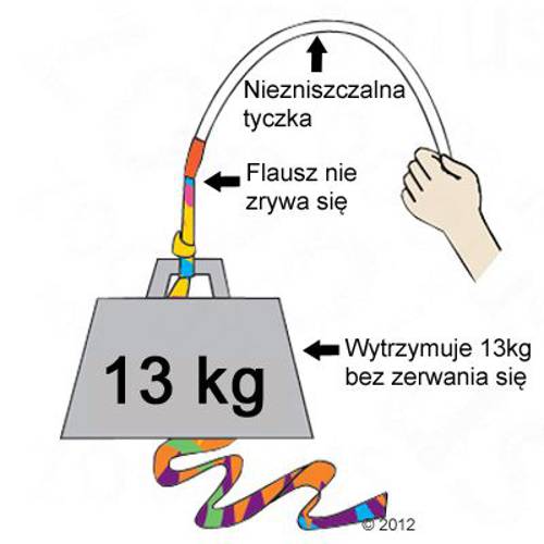 Bardzo wytrzymała wędka - zabawka z długą, elastyczną wstążką z flauszu, przyjemność dla kota i właściciela, niemal niezniszczalna, wytrzymuje wagę do 13 kg, wyprodukowana w USA, dł. 150 cm