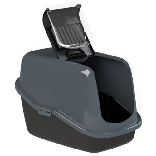 - Kryta kuweta dla kotów, w komplecie z łopatką i przyjaznym środowisku, drewnianym żwirkiem.