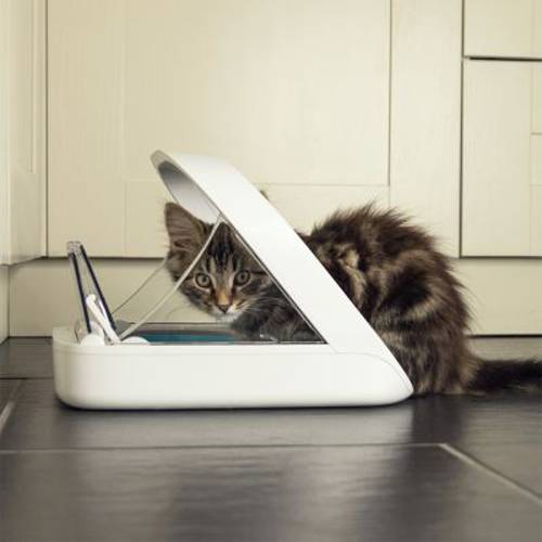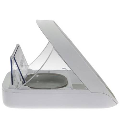 Automat jest wyposażony w funkcję sterowanej mikrochipem kontroli dostępu: urządzenie skanuje mikrochip Twojego pupila i rozpoznaje go w przyszłości. Pokrywa automatu otwiera się wówczas już tylko dla zarejestrowanych zwierząt. W razie zbliżenia się innego zwierzęcia do urządzenia pokrywa nie otwiera się albo natychmiast się zamyka. W ten sposób automat na karmę gwarantuje, że każde zwierzę zjada odpowiedni, przeznaczony tylko dla niego pokarm. Pokrywa automatu zamyka się automatycznie po opuszczeniu przez zarejestrowane zwierzę obszaru działania czujnika.