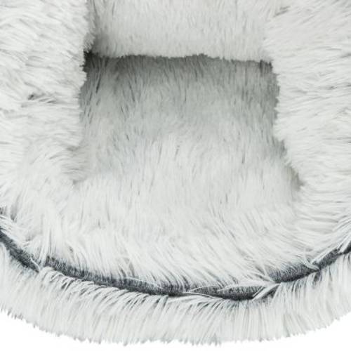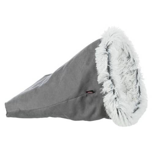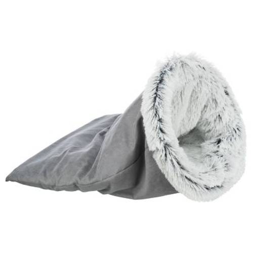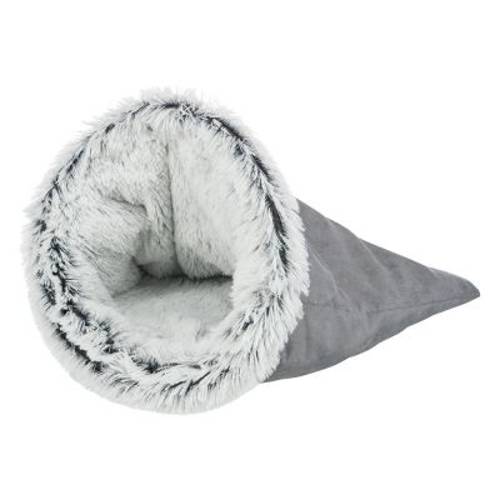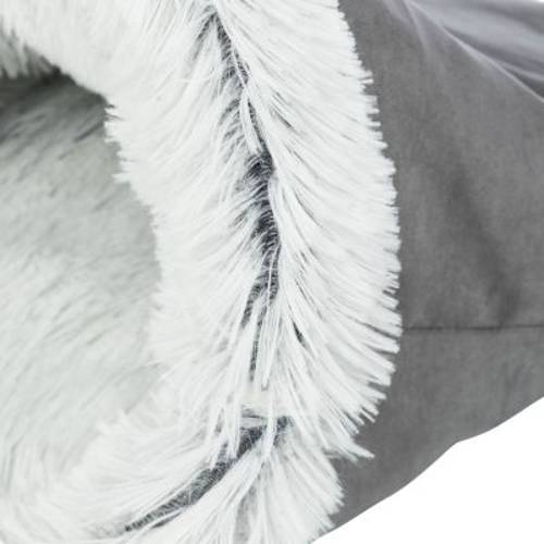 Wyjątkowo przytulny śpiwór dla kota z weluru i pluszu, łatwe wejście, stabilny wymiarowo dzięki metalowemu pierścieniowi, z wypełnieniem z poliestru włókniny, kolor: szary
