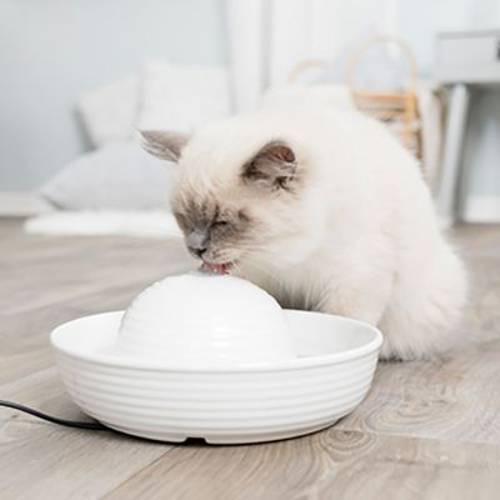 Poidełko-fontanna marki Trixie, z miską i kopułą z białej lub szarej ceramiki, zapewnia strumień świeżej wody, zachęca do picia, nadaje się do mycia w zmywarce, dostępne w 2 rozmiarachPoidełko-fontanna Vital Flow i Vital Flow Mini marki Trixie zapewni Twojemu kotu lub psu dostęp do świeżej, przefil…