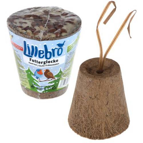 Pokarm uformowany w kształt dzwonka firmy Lillebro z opakowaniem z włókien naturalnych. Pyszne wypełnienie sprawia, że jest to wyjątkowo smaczna przekąska dla dzikich ptaków, który od razu pokochają. Specjalna mieszanka ziaren i przepysznych orzechów gwarantuje wysokokaloryczne żywienie bogate w witaminy i minerały. Dozownik wykonany jest z włókien kokosa - zapewnia on ptakom wygodne miejsce, którego mogą się trzymać, wisząc do góry nogami. Praktyczny sznurek umożliwia przymocowanie dzwonka do płotu czy gałęzi. Zimą dzikim ptakom w miastach jest szczególnie trudno znaleźć pożywienie, więc musze one polegać na pomocy ludzi. Dzwonek Lillebro jest doskonałym sposobem, aby im pomagać!Kup teraz 3 x 250 Dzwonek z ziaren Lillebro, a dodatkowo otrzymasz jeszcze 1 dzwonek gratis!