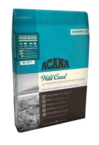 Jedzenie Acana Wild Coast przepełnione jest mięsem ryb poławianych w naturalnym środowisku z okolic wyspy Vancouver. Ryby dostarczane są do naszej kuchni w całości i świeże, bogate w składniki odżywcze i pełne doskonałego smaku. Jedzenie Acana nie zawiera wysokoglikemicznych zbóż, cechuje się wysoka zawartością białka zwierzęcego i kwasów Omega-3, które gwarantują szczytowa formę Twojego psa.