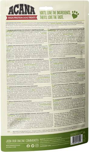 Nowe, wysokobiałkowe przysmaki ACANA zachwycą Twojego psa przede wszystkim fantastycznym smakiem. Ciebie zaś urzekną zdrowym i pożywnym składem! Tworzone z zaledwie 5 naturalnych składników, nowe przysmaki ACANA pozwolą Ci bez wyrzutów sumienia nagradzać i rozpieszczać swojego pupila. Idealne jako dowód miłości czy nagroda za doskonale wykonaną sztuczkę, nie obciążają żołądka Twojego psa.