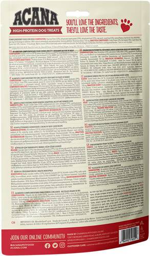 Nowe, wysokobiałkowe przysmaki ACANA zachwycą Twojego psa przede wszystkim fantastycznym smakiem. Ciebie zaś urzekną zdrowym i pożywnym składem! Tworzone z zaledwie 5 naturalnych składników, nowe przysmaki ACANA pozwolą Ci bez wyrzutów sumienia nagradzać i rozpieszczać swojego pupila. Idealne jako dowód miłości czy nagroda za doskonale wykonaną sztuczkę, nie obciążają żołądka Twojego psa.