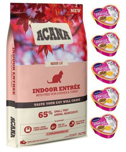 ACANA Indoor Entrée to idealna formuła dla domowych drapieżników. Koty niewychodzące również wymagają żywienia opartego na mięsie, dlatego Indoor Entrée zawiera aż 65% składników mięsnych w odżywczych proporcjach WholePrey. Dzięki mniejszej zawartości tłuszczu, a tym samym kalorii, pozwala utrzymać formę kotom niewychodzącym.