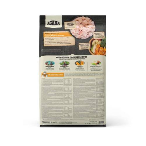 Karma Acana wyprodukowana jest ze świeżych, naturalnych składników, dlatego chrupki mogą różnić się kształtem i kolorem.