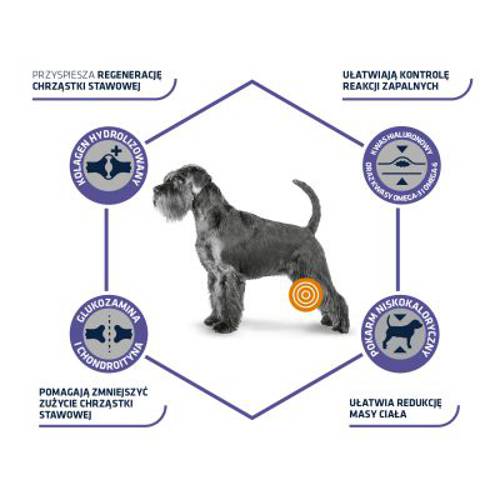 Niskotłuszczowa karma sucha dla psów z nadwagą lub problemami stawowymi, z kwasem hialuronowym, witaminą K2, glukozaminą i chondroityną, działa przeciwzapalnie i pomaga chronić kości i chrząstkę
