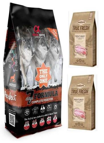 Zestaw zawiera: - 1x Alpha Spirit 7 Days Formula pełnoporcjowa karma 12kg- 2x Carnilove True Fresh Dog mix smaków 100g GRATIS 7 DAYS FORMULA to specjalnie skomponowane menu, które dostarczy każdemu psu wszystkich niezbędnych wartości odżywczych. Połączenie wyłącznie świeżego mięsa z kurczaka, wołow…