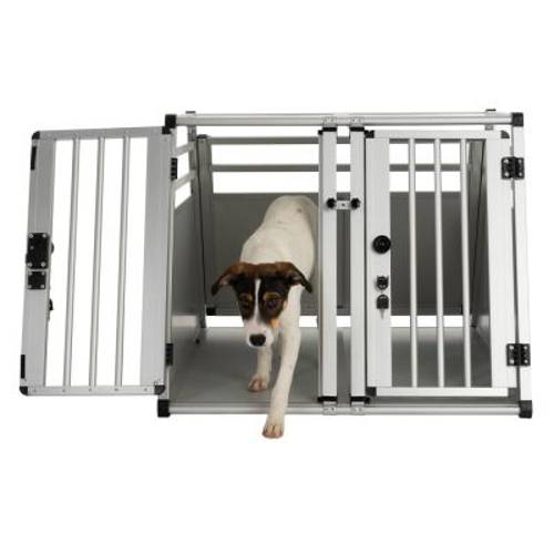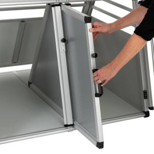 Prezentowany wysokiej jakości, aluminiowy transporter dla psów zapewnia bezpieczeństwo i komfort podczas transportu psów dużych ras w samochodzie. Transporter jest wyposażony w ściankę działową, za pomocą której w razie potrzeby można podzielić wnętrze. System ten jest pozbawiony zbędnych prowadnic na podłodze i można go w prosty sposób przymocować z przodu transportera za pomocą trzech śrub z chwytem gwiazdowym. Dzięki temu duże psy mogą wygodnie ułożyć się na całej powierzchni podłogi, a mniejsze psy można łatwo oddzielić od siebie na czas transportu.Ten wytrzymały, a zarazem lekki transporter został wykonany z solidnych profili aluminiowych i wodoodpornego, aluminiowo-plastikowego kompozytu (Aluminium-Plastic Composite Panel). Dzięki ściętemu przodowi i tyłowi doskonale pasuje do bagażnika. Gdyby w razie wypadku dostęp do bagażnika był niemożliwy, będziesz móc uwolnić swojego czworonoga przez zdejmowaną ścianę tylną. Transporter dla psów AluRide zapewnia Twojemu pupilowi najwyższy poziom bezpieczeństwa w każdej sytuacji. Oferuje także skuteczną ochronę przed słońcem i pomaga zapobiegać przegrzaniu.