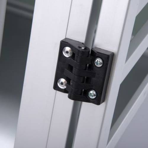 Drzwiczki zostały wykonane z aluminium i przymocowane do zawiasów z wytrzymałego tworzywa sztucznego. Mogą być zamykane na klucz. Na ramie znajdują się gumowe podkładki, które zapobiegają trzaskaniu i grzechotaniu w czasie jazdy.Aluminiowy transporter dla psa gwarantuje bezpieczeństwo Twojego czworonoga w każdej sytuacji. Dodatkowo chroni przed słońcem i przegrzaniem.