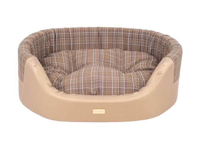 Wykonana z bardzo wytrzymałej tkaniny poliestrowej z klasycznym wzorem w kratę odpornej na uszkodzenia oraz skóry syntetycznej w bardzo szykownych, metalicznych kolorach. Poducha wypełniona jest dużą ilością specjalnej, antyalergicznej mieszanki puchu syntetycznego i pianki, która zapewnia wysoki komfort oraz izolację od podłoża. Poduszkę można wyprać w pralce lub ręcznie, dzięki czemu czyszczenie i odświeżenie legowiska jest bardzo łatwe.