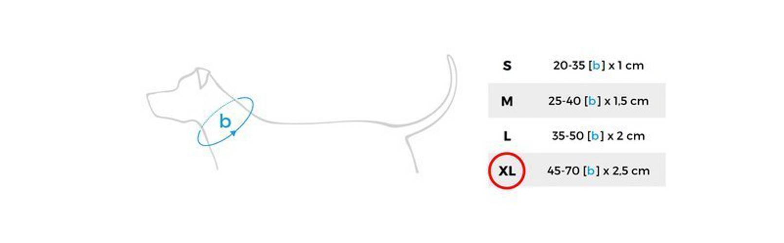 Specyfikacja obroży regulowanej Denim XL dla psa: