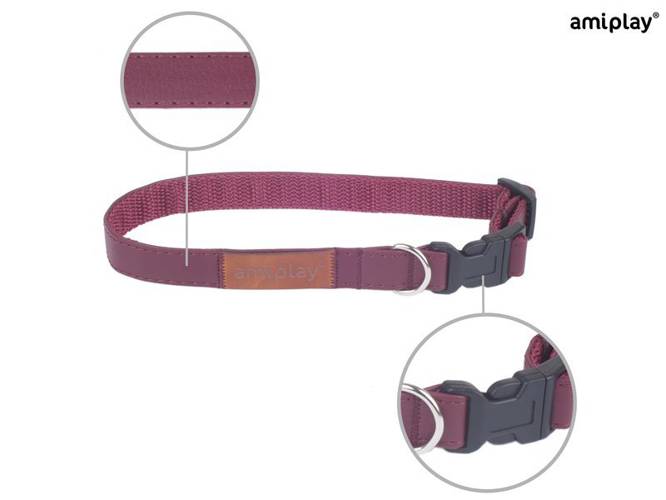amiplay Lincoln Obroża regulowana M 25 – 40 x 1,5 cm bordowa dla psa