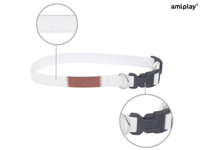 amiplay Lincoln Obroża regulowana S 20 – 35 x 1 cm biała dla psa
