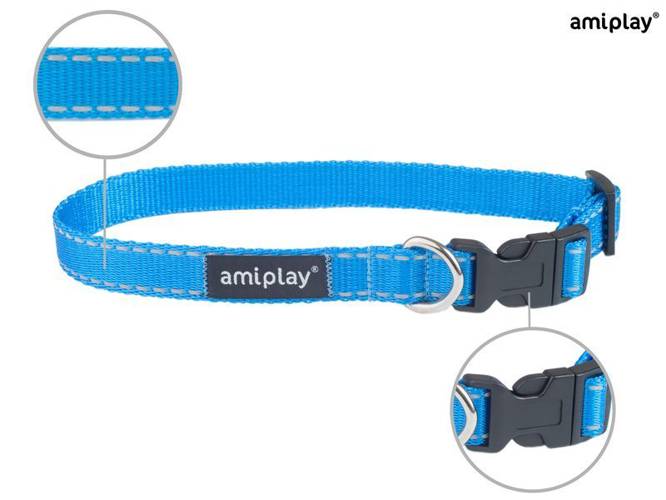 amiplay Reflective Obroża regulowana L 35 – 50 x 2 cm niebieska dla psa