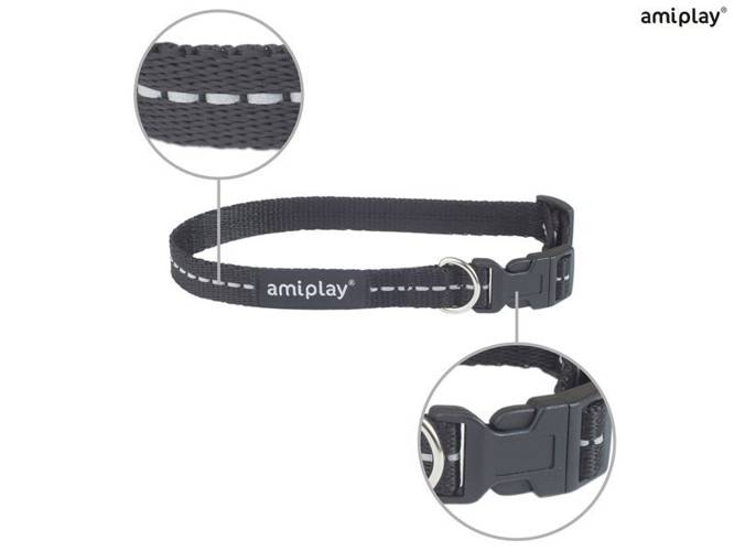 amiplay Reflective Obroża regulowana M 25 – 40 x 1,5 cm czarna dla psa