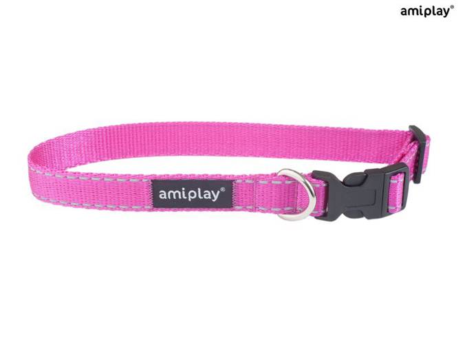 amiplay Reflective Obroża regulowana XL 45 – 70 x 2,5 cm różowa dla psa