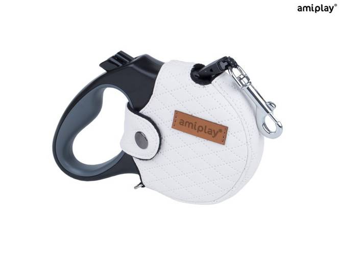 amiplay Infini Smycz automatyczna z obudową Cambridge L 5 m – 25 kg biała dla psa