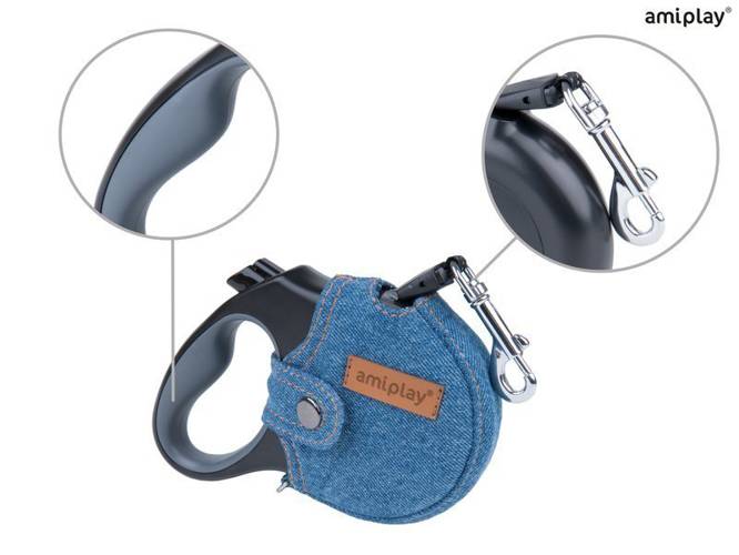 amiplay Smycz automatyczna infini z obudową Denim S Niebieski