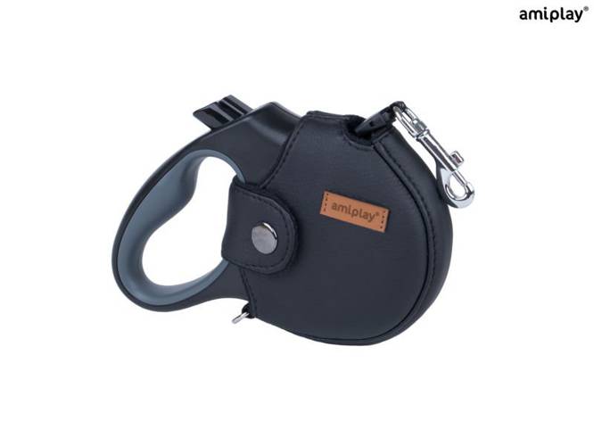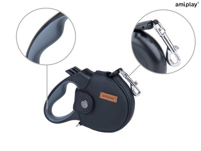 amiplay Infini Smycz automatyczna z obudową Lincoln S 3 m - 12 kg czarna dla psa