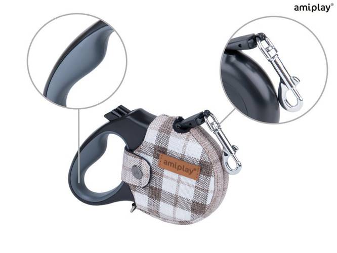 amiplay Infini Smycz automatyczna z obudową London S 3 m - 12 kg brązowa dla psa