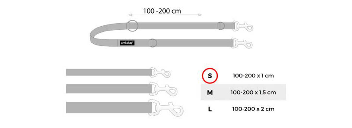 amiplay Joy Smycz regulowana 6in1 S 100 – 200 x 1,5 cm niebieska dla psa