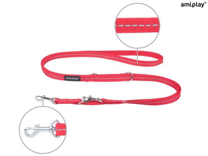 amiplay Smycz regulowana 6 in 1 Reflective M Czerwony