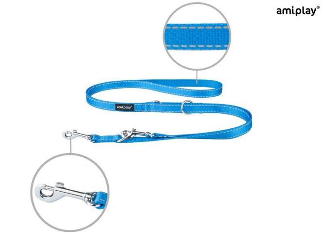 amiplay Reflective Smycz regulowana 6in1 XL 100 – 200 x 2,5 cm niebieska dla psa