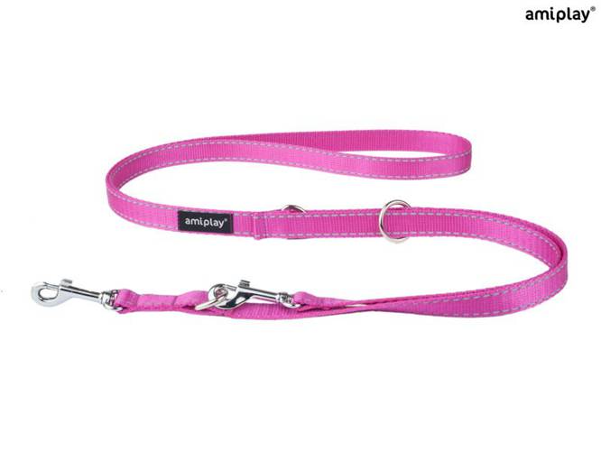 amiplay Smycz regulowana 6 in 1 Reflective XL Różowy
