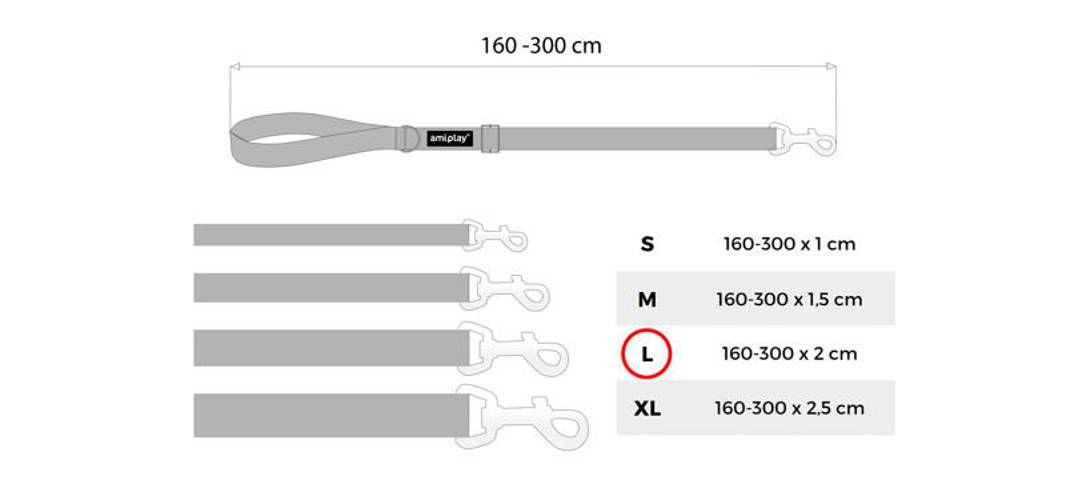 amiplay Basic Smycz regulowana Easy Fix L 160 - 300 x 2 cm czarna dla psa
