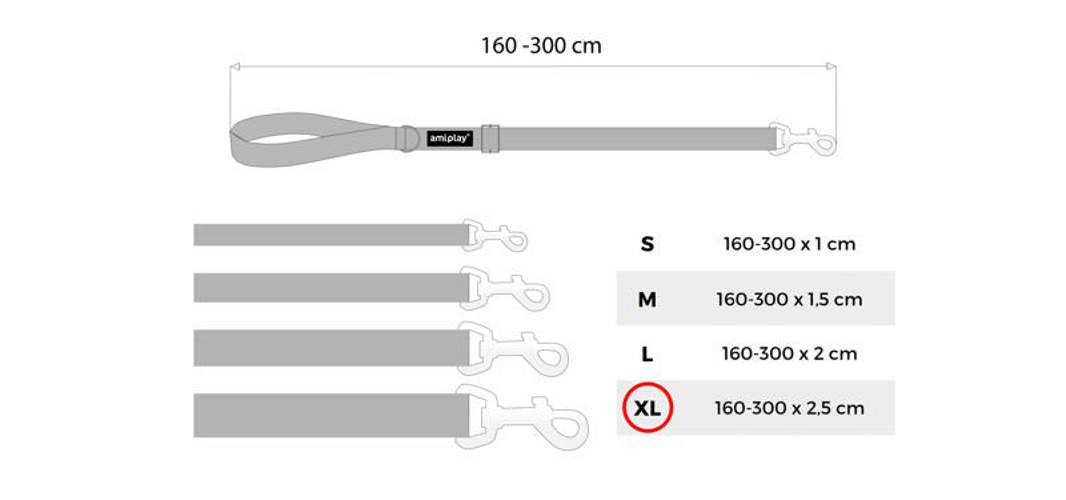 amiplay Basic Smycz regulowana Easy Fix XL 160 - 300 x 2,5 cm czerwona dla psa