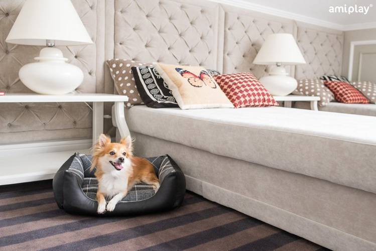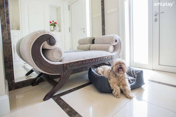 Stylowe legowisko wypoczynkowe dla psów ras małych. Wykonane z najwyższej jakości materiałów, trwałe, odporne na odgniecenia.