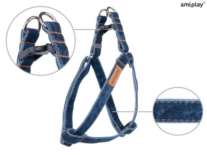 amiplay Denim Szelki regulowane XL 50-95 [c, d] x 2,5 cm granatowe dla psa