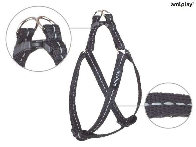 amiplay Reflective Szelki regulowane S 20-35 x 1 cm czarne dla psa