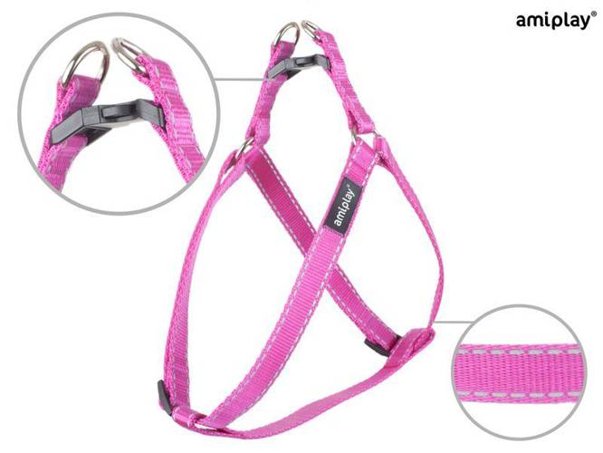 amiplay Reflective Szelki regulowane XL 50-95 x 2,5 cm różowe dla psa