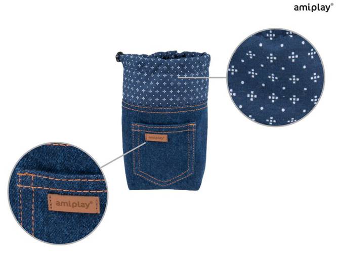 Torebka na przysmaki wykonana jest z bardzo trwałego jeansu. Aby zachować higienę wystarczy ją wyprać po zakończonym treningu i torebka jest znów gotowa do użycia.