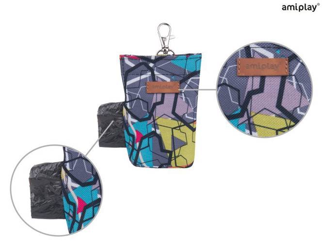 amiplay Adventure Torebka na worki, na odchody - abstrakcjaPrzeznaczenie Torebki na worki, na odchody – abstrakcjaTorebka do przechowywania worków na odchody, zapinana do smyczy. Wykonana z najwyższej jakości materiałów, trwała, poręczna. Możliwość prania w pralce.Charakterystyka Torebki na worki, …