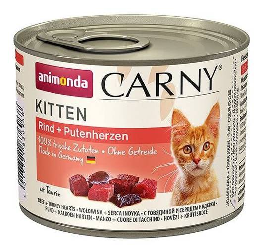 Animoda Carny Kitten jest karmą bezzbożową, nie zawiera soi, cukru, sztucznych barwników, konserwantów ani polepszaczy smaku i zapachu.