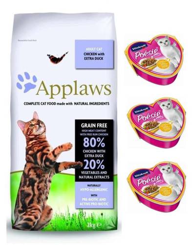 + 3x Vitakraft Poesie 85g Sauce kurczak z warzywami GRATIS Kompletna karma z ekologicznego drobiu z kaczką dla dorosłych kotów bez zbóż. Applaws sucha karma dla kotów jest unikalną w swojej formule kompletną dietą, symulującą naturalny pokarm jakim odżywiają się koty na wolności. Koty są mięsożer…