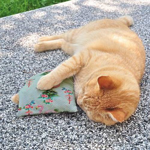 Wewnątrz poduszki znajduje się certyfikowana CE zawartość - wysokowartościowa waleriana aptecznej jakości przyciągnie każdego kota. Ma stymulujące właściwości i skłoni Twojego kota do zajęcia się poduszką - a ta zabawa potrwa na pewno długo! Dzięki łuskom orkiszu pochodzącym z ekologicznej uprawy flaming naturalnie wzbudzi zainteresowanie kota. Dodatkowo poduszka wydziela pociągający zapach kociemiętki, który jeszcze bardziej zachęci do zabawy każdego pieszczocha!