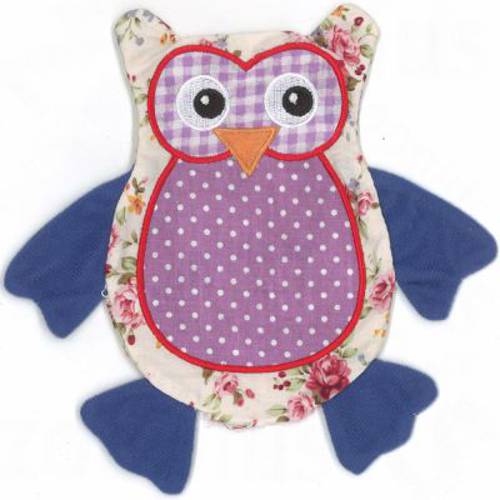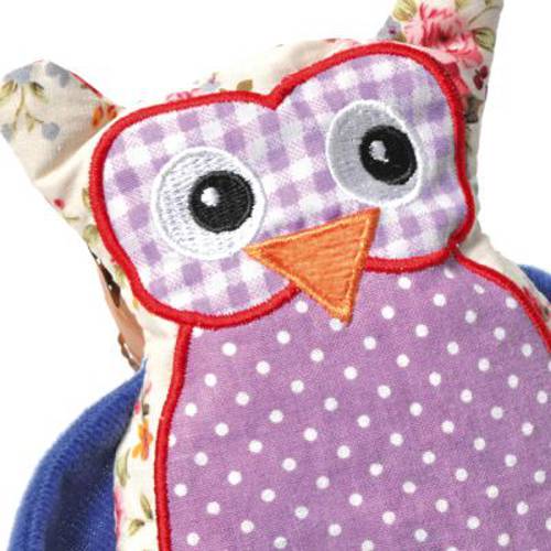 Kolorowa patchworkowa sowa, pięknie wykonana, wypełniona walerianą i szeleszczącym orkiszem, wyprodukowana w Niemczech. Wymiary: dł. x szer. x wys.: 15 x 14 x 3 cm