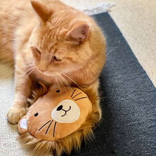 Świat stanął na głowie! Wielki kot jako mały towarzysz dla Twojego zwierzaka. Dzięki poduszce do zabawy dla kota Aumüller lew Leo Twój kot poczuje się jak członek lwiej rodziny i będzie mógł bawić się ze swoim nieco większym kuzynem.Poduszka do zabawy jest cudownie miękka, z uroczo wyhaftowaną twarzą i kędzierzawą grzywą, która zachęca do przytulania. Wnętrze wypełnione jest łuskami eko-orkiszu, które ekscytująco szeleszczą.. Do tego dochodzi nieodparty zapach korzenia waleriany, który w magiczny sposób przyciąga koty i zachęca je do wesołej zabawy.