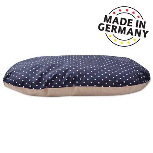 Prozdrowotne miejsce do spania dla psów, dwukomorowe wypełnienie z ekologiczną łuską orkiszową, rozluźnia mięśnie, odciąża stawy, rozgrzewa, produkcja niemiecka, kolor: ciemnoniebieski/kremowy
