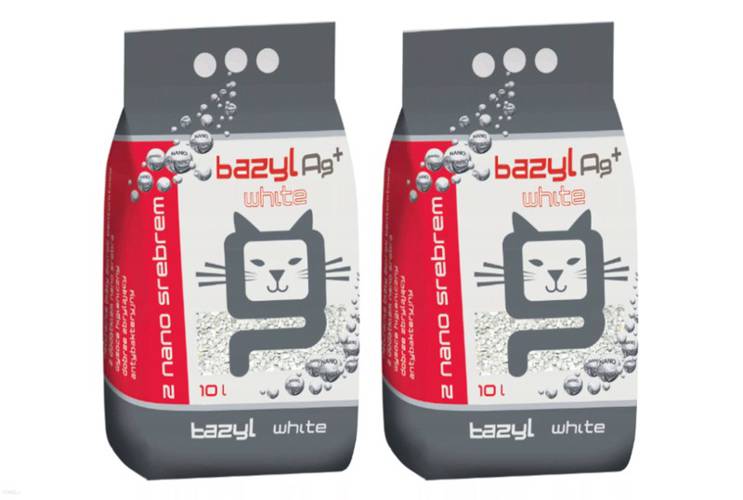 Żwirek Bazyl Ag+ White to bardzo drobny, naturalnie biały żwirek z najwyższej jakości bentonitu (zawartość montmorylonitu powyżej 80%), bezzapachowy, wzbogacony o dobroczynne nanosrebro, które jako naturalny antybiotyk ma własności antyseptyczne i dezynfekujące. Jony nanosrebra działają permanentnie i zapobiegają rozwojowi bakterii i grzybów.