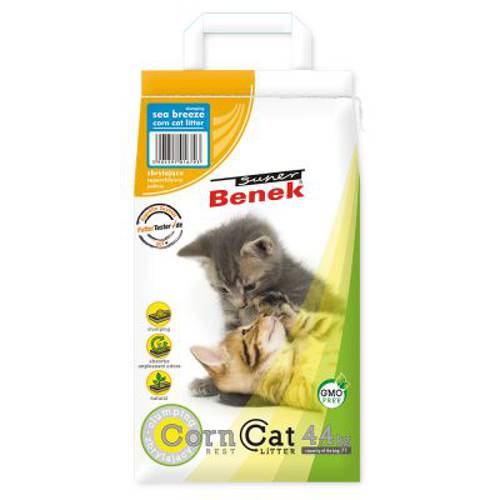 Żwirek Benek Super CORNCat cechuje wyjątkowa chłonność i szybka absorbcja płynów. Żwirek tworzy niewielkie płaskie bryłki. Dzięki tym cechom żwirku czyszczenie kuwety staje się wyjątkowo łatwe i wygodne. Żwirek skutecznie neutralizuje przykre zapachy, natomiast delikatna woń morskiej bryzy wprowadza przyjemne uczucie świeżości do pomieszczenia. Właściwości żwirku sprawiają, że ten nie rozsypuje się poza kuwetę.