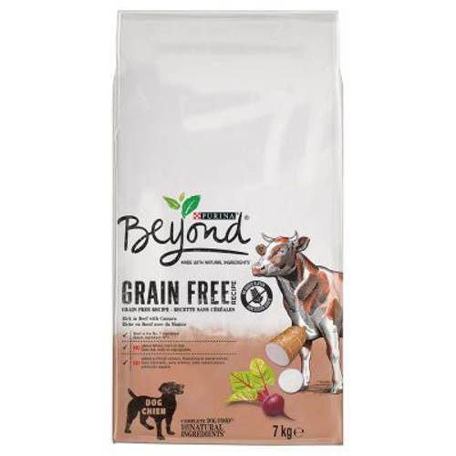 Bezzbożowa karma dla psów Beyond zawiera wołowinę jako główny składnik, który dostarcza psu białko zwierzęce, a jednocześnie zapewnia pyszny smak pokarmu. Zamiast zbóż dodano maniok, który z natury nie zawiera glutenu. Sucha karma nie zawiera żadnych sztucznych dodatków, takich jak aromaty, barwniki i konserwanty.