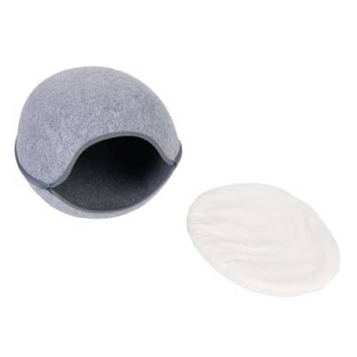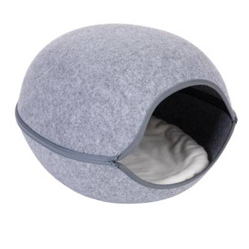 Przestronna budka dla kota, ze sztucznego filcu, otwierana suwakiem, także jako legowisko, z wyjmowaną przytulną poduszką, chroni przed przeciągiem, kolor: szary