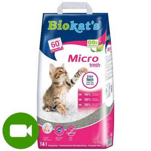 Zbrylający się żwirek dla kota, o przyjemnym zapachu lata, drobnoziarnisty, 4 x bardziej wydajny niż zwykłe żwirki, prawie w ogóle się nie pyli, maks. wiąże nieprzyjemne zapachy, z surowej glinyNowy żwirek dla kota Biokat's Micro Fresh! Wideo zawiera napisy w języku polskim. Jeżeli ich nie widzi…