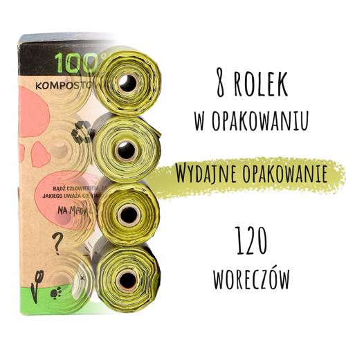 Ośmiopak zawiera 8 rolek. W rolce znajduje się 15 worków StarchBag. Razem 120 worków w zestawie.